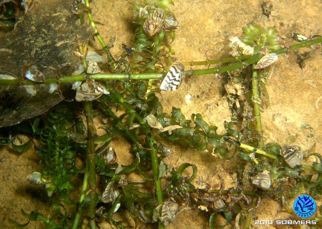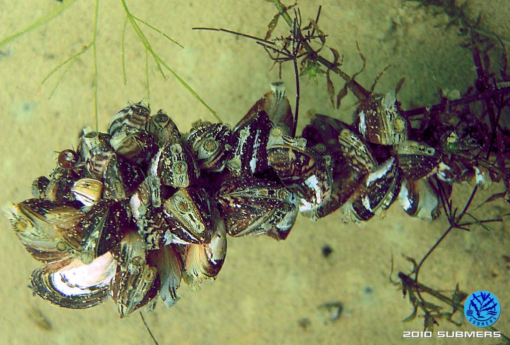 Weichtier; wichtiger Filtrierer; Neozoa; eingeschleppt klebend an Schiffsrümpfen; bis 2cm hoch, 4cm lang und 2,5 cm breit; Körper wird umhüllt von zweiklappiger Schale, verbunden durch elastisches Schloßband (Ligament); Schloß der Muschel ist wichtiges Bestimmungsmerkmal für Muscheln; Schloss der Zebramuschel ist zahnlos; Mantel produziert die dreiteilige Schale mit horniger Außenschicht, kalkiger Schicht in der Mitte und Perlmuttschicht innen; muskulöser Fuß heftet sich mit Sekretfäden (Byssus) aus Fußdrüse auch an hartem Untergrund fest; innen hinten in Mantelhöhle liegende Kiemen saugen mit Flimmerhärchen durch Öffnung Sauerstoff, Nahrung und Wasser ein; filtrieren und scheiden durch anderes Loch wieder aus; Nahrung sind Mikroorganismen und organische Pflanzenstoffe (Detritus); durch Filtrieren wird Planktonmenge in Grenzen gehalten, Abfallprodukte werden als Nahrung verwertet; die Ausscheidungen führen zu Schlammbildung; getrennt geschlechtlich; befruchtete Eier werden zu Larven (Glochidien); freies achttägiges Larvenstadium;